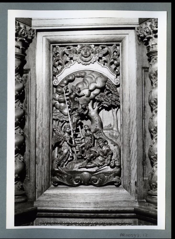 Eén van 23 zwart-wit foto's van kerk van Wijnaldum en het interieur