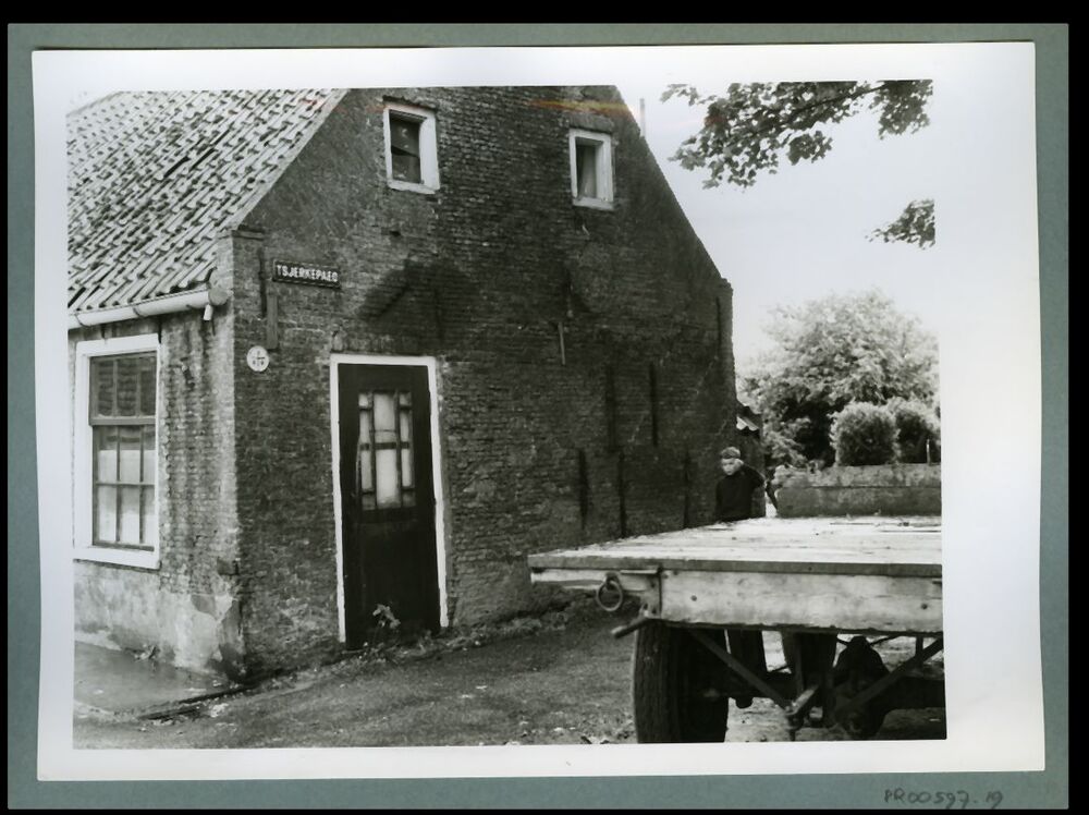Eén van 23 zwart-wit foto's van kerk van Wijnaldum en het interieur