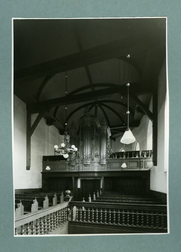Eén van 14 zwart-wit foto's van de kerk van Wijnaldum en het interieur