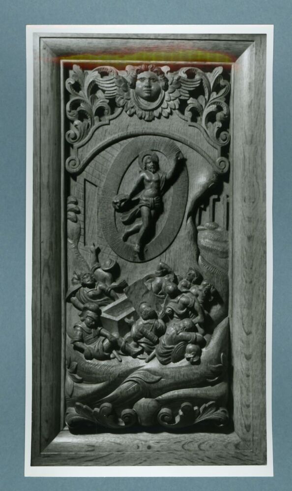 Eén van 14 zwart-wit foto's van de kerk van Wijnaldum en het interieur
