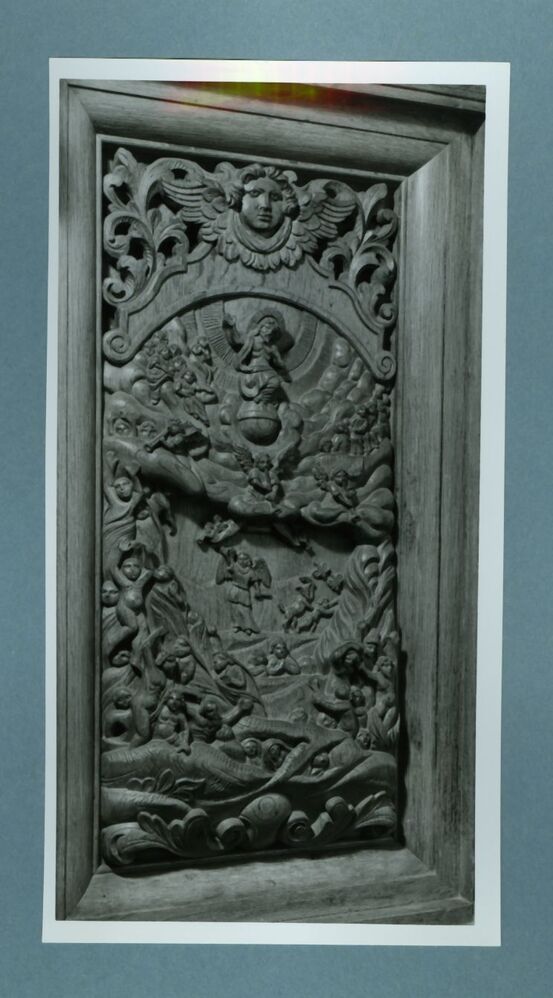 Eén van 14 zwart-wit foto's van de kerk van Wijnaldum en het interieur