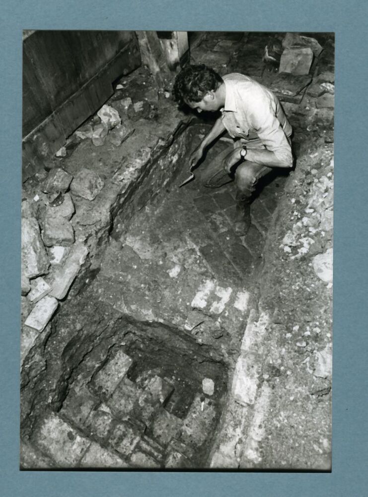 Onder de vloer in de kerk van Zweins tijdens de restauratie