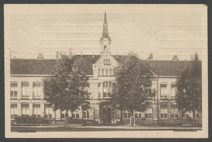 Eén van 7 ansichtkaarten van de Ambachtsschool te Leeuwarden
