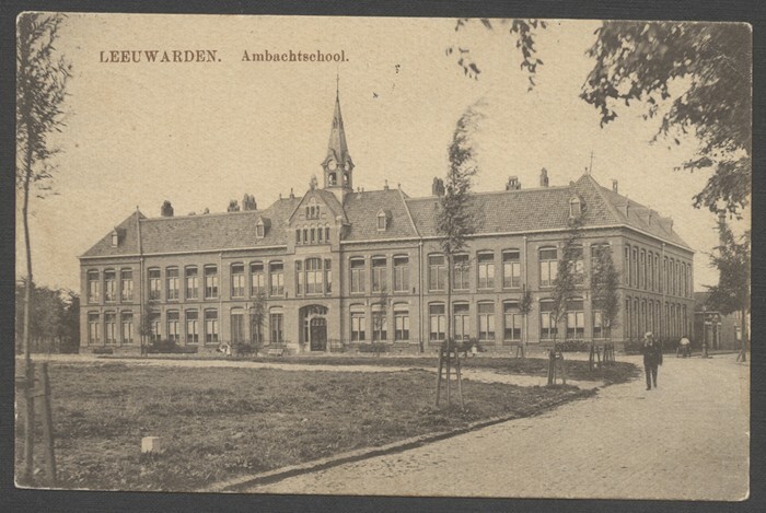 Eén van 7 ansichtkaarten van de Ambachtsschool te Leeuwarden