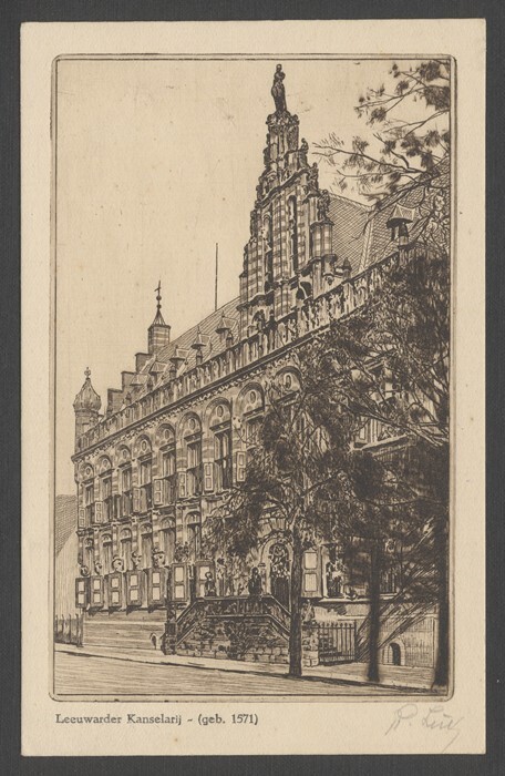 Eén van 20 ansichtkaarten van de Kanselarij te Leeuwarden