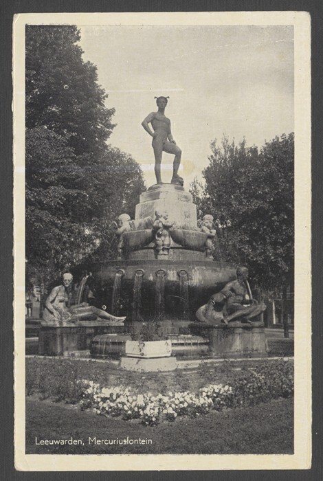 Eén van 14 ansichtkaarten van de Mercuriusfontein te Leeuwarden