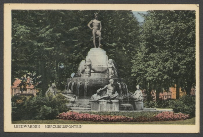 Eén van 14 ansichtkaarten van de Mercuriusfontein te Leeuwarden
