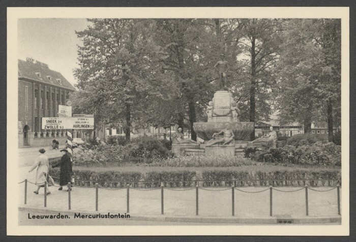 Eén van 14 ansichtkaarten van de Mercuriusfontein te Leeuwarden