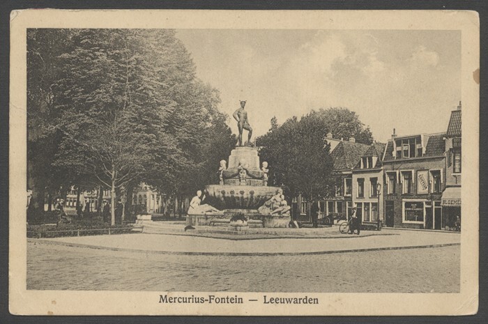 Eén van 14 ansichtkaarten van de Mercuriusfontein te Leeuwarden