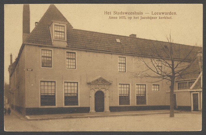 Eén van 8 ansichtkaarten van het Stadsweeshuis te Leeuwarden