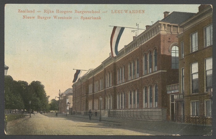 2 ansichtkaarten van scholen te Leeuwarden