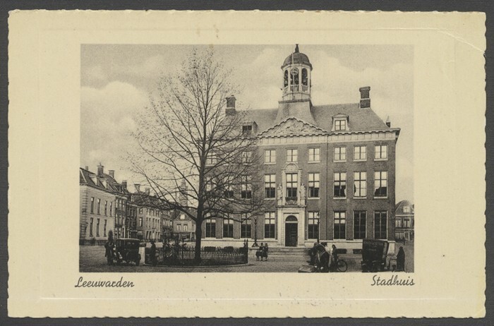 Eén van 21 ansichtkaarten van het Stadhuis te Leeuwarden