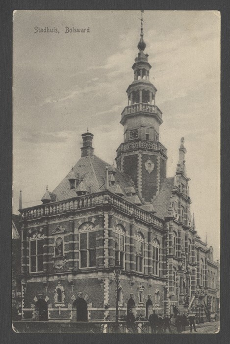 Eén van 28 ansichtkaarten van het Stadhuis te Boalsert