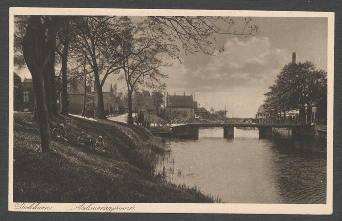 Eén van 3 ansichtkaarten van de Aalsumerpoort te Dokkum