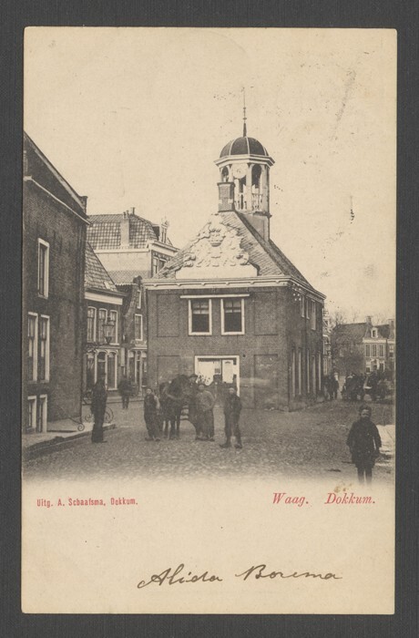 Eén van 4 ansichtkaarten van de Waag te Dokkum