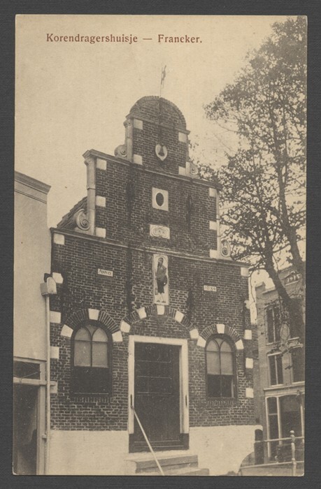 Eén van 13 ansichtkaarten van het Korendragershuisje te Franeker