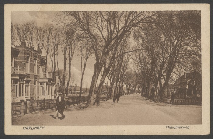 Eén van 3 ansichtkaarten van de Midlumerweg te Harlingen