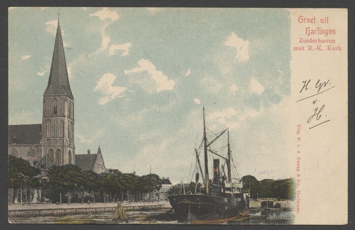 Eén van 18 ansichtkaarten van de Zuiderhaven te Harlingen