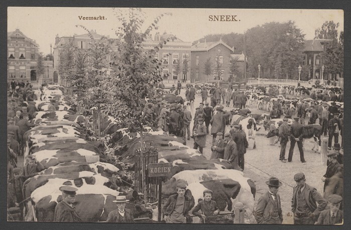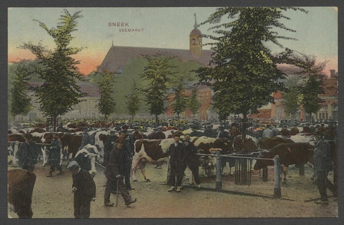 4 ansichtkaarten van de Veemarkt te Sneek