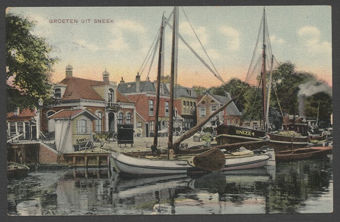 Eén van 59 diverse ansichtkaarten en 1 mapje met ansichtkaarten van Sneek