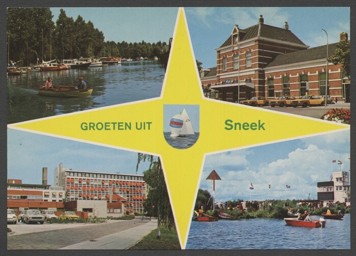 Eén van 59 diverse ansichtkaarten en 1 mapje met ansichtkaarten van Sneek