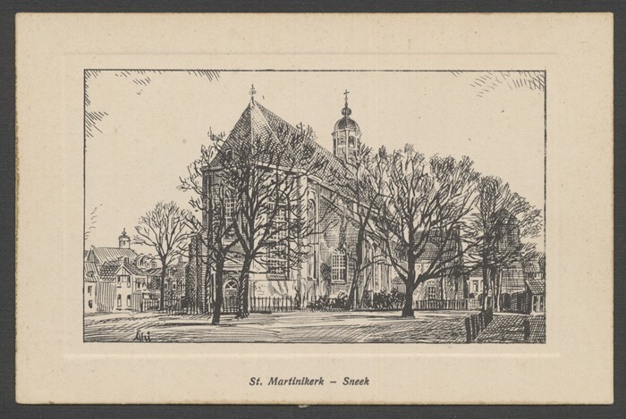 Eén van 59 diverse ansichtkaarten en 1 mapje met ansichtkaarten van Sneek
