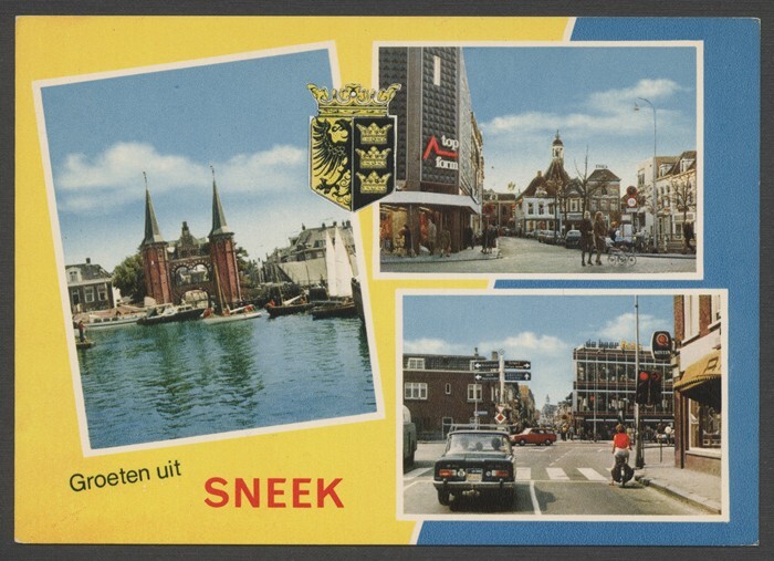 Eén van 59 diverse ansichtkaarten en 1 mapje met ansichtkaarten van Sneek