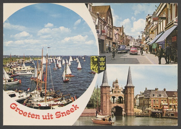 Eén van 59 diverse ansichtkaarten en 1 mapje met ansichtkaarten van Sneek