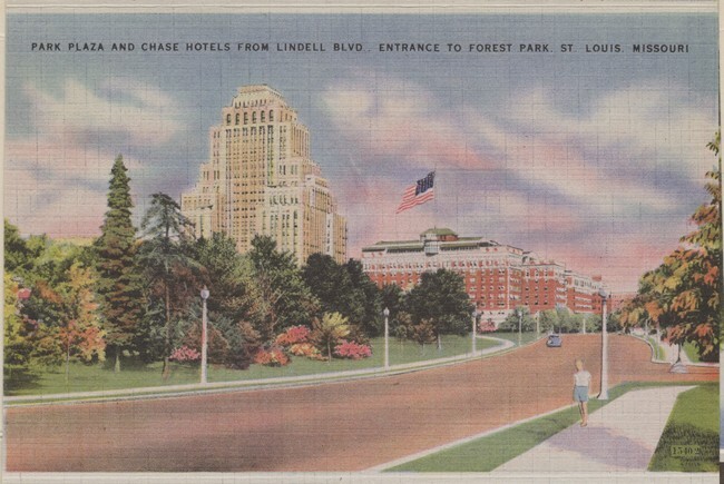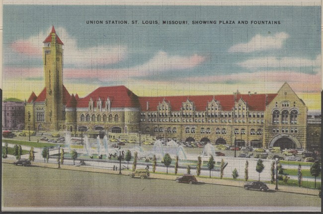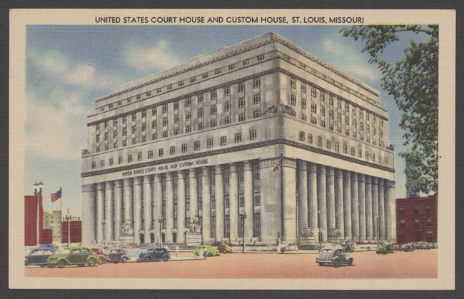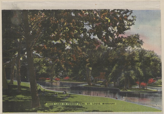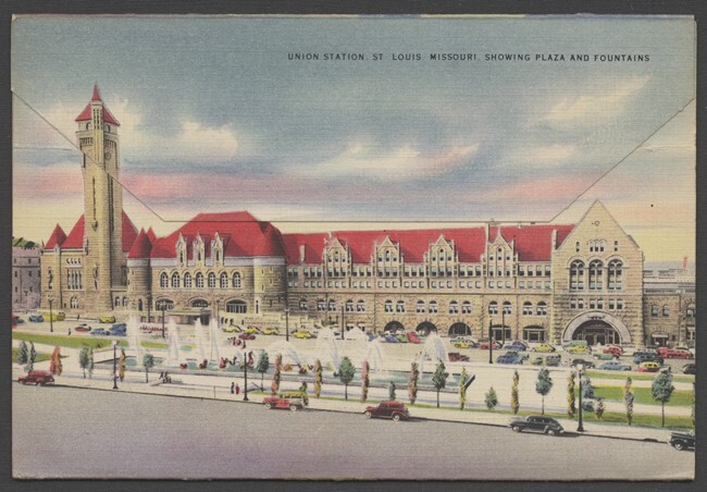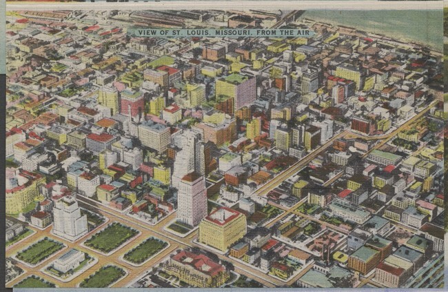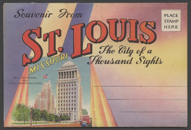 12 ansichtkaarten en 1 mapje met ansichtkaarten van Saint Louis in de Verenigde Staten