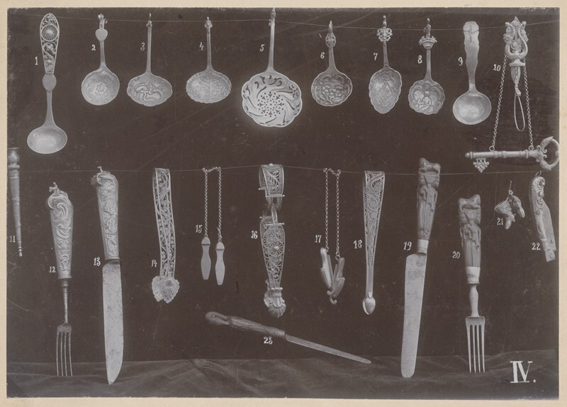 Verzameling genummerde Zilveren objecten IV in opstelling van Fries Museum te Leeuwarden