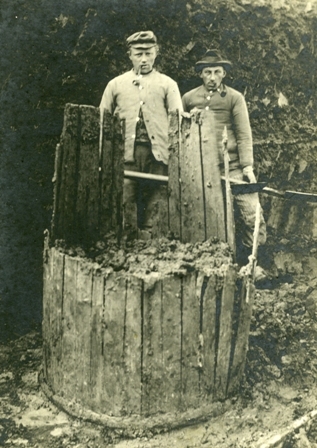 Twee mannen bij een tonput uit de terp van Hogebeintum