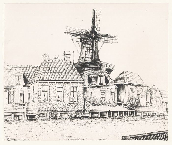 Tekening van koren-,pel-en houtzaagmolen de Zwaluw te Wânswert