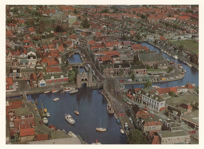 Luchtopname stadsdeel met de waterpoort te Sneek