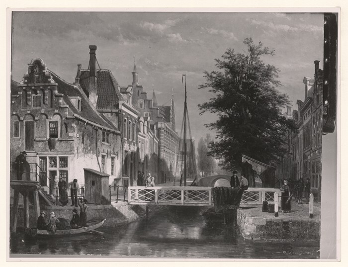 Schilderij, Gezicht vanaf de Tuinen te Leeuwarden op de Turfmarkt