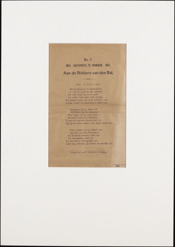 Aan de ridders van den bal. 1853 Kaatspartij te Franeker 1883