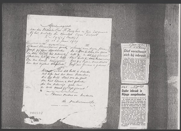 Niet bewegende afbeeldingen vervaardigd met van stralingsgevoelige materialen (gevoelig voor licht, elektronenstralen of nucleaire straling), met uitzondering van reproductieve afdrukken van documenten en technische tekeningen. Gebruik daarvoor termen, die bijeengebracht zijn onder 'reprografische kopieën'. Foto's kunnen positief of negatief zijn, ondoorschijnend of transparant (in vaktermen: opzicht of doorzicht). https://data.cultureelerfgoed.nl/term/id/cht/05ff3aa4-a6e8-4d93-b261-94f2bcb6167d