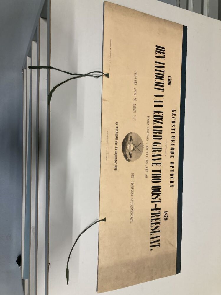 Map met lithographiën van een optocht in 1879 gehouden naar de intocht van Edzard I den Grote op 1 Mei 1506 binnen de Poelepoort te Groningen.