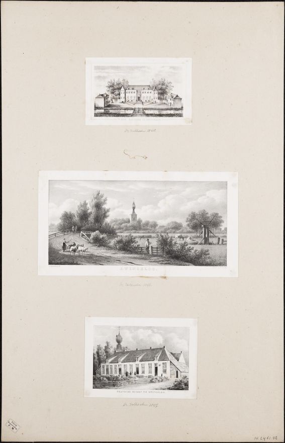 Map Drenthe met afbeeldingen van dorpen, dorpskerken en havezathen