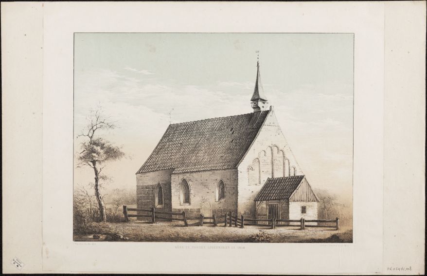 Map Drenthe met afbeeldingen van dorpen, dorpskerken en havezathen