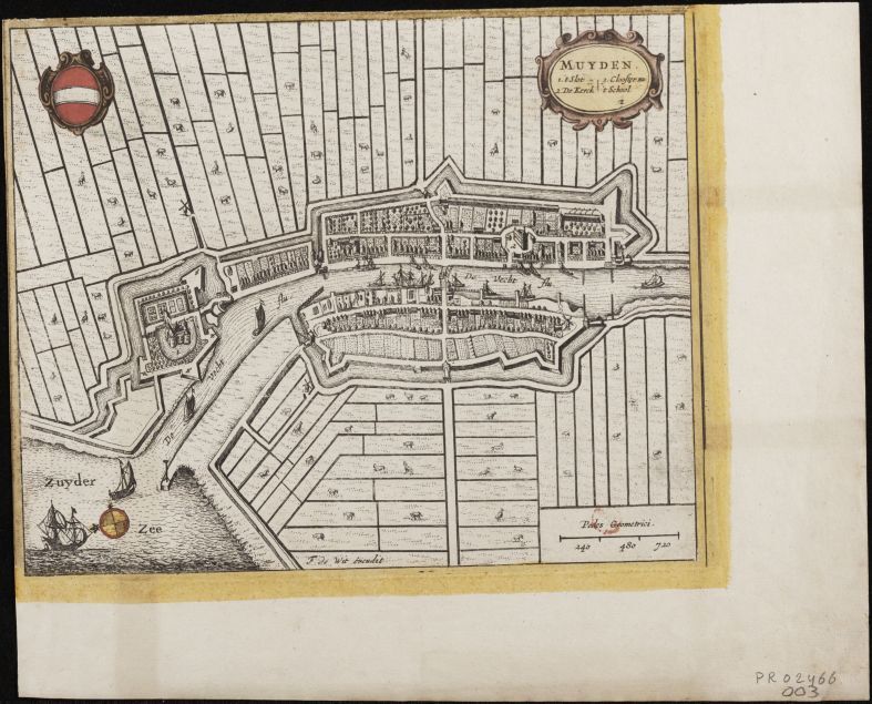Afbeelding van de stad Muiden van bovenaf bekeken