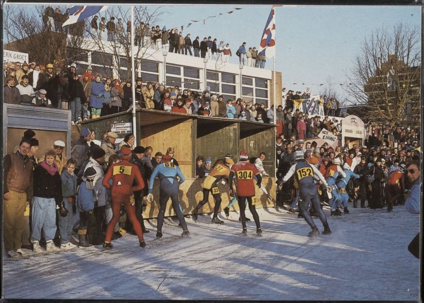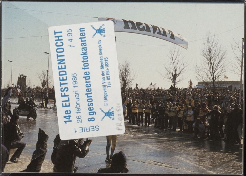Acht gesorteerde fotokaarten van de 14e elfstedentocht op 26 februari 1986