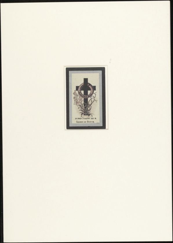 Oorspronkelijk een kleine devotieprent met op de achterzijde een met de hand geschreven naam van een overledene en een gebed ter nagedachtenis. Gedrukte exemplaren vanaf ca. 1730. In de 19e eeuw kwam een bredere vespreiding op gang waarbij het gebed werd uitgebreid met persoonlijke gegevens van de gestorvene. In de 20e eeuw algemeen gebruikt in rooms-katholieke en ook in oud-katholieke kring. Sinds de laatste decennia van de 20e eeuw ook wel voorzien van een foto van de overledene of een meditatieve natuurfoto. (Religieus Erfgoedthesaurus)