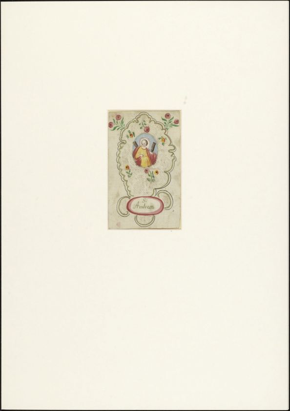 Devotieprentje met de afbeelding van een heilige. Kan een reliek van de afgebeelde heilige zijn opgenaaid. Gebruik gebedsprentje indien er een gebedstekst is toegevoegd. (Religieus Erfgoedthesaurus) https://data.cultureelerfgoed.nl/term/id/cht/0a117884-0cc2-4ee0-a223-8f6ce1fa8e67