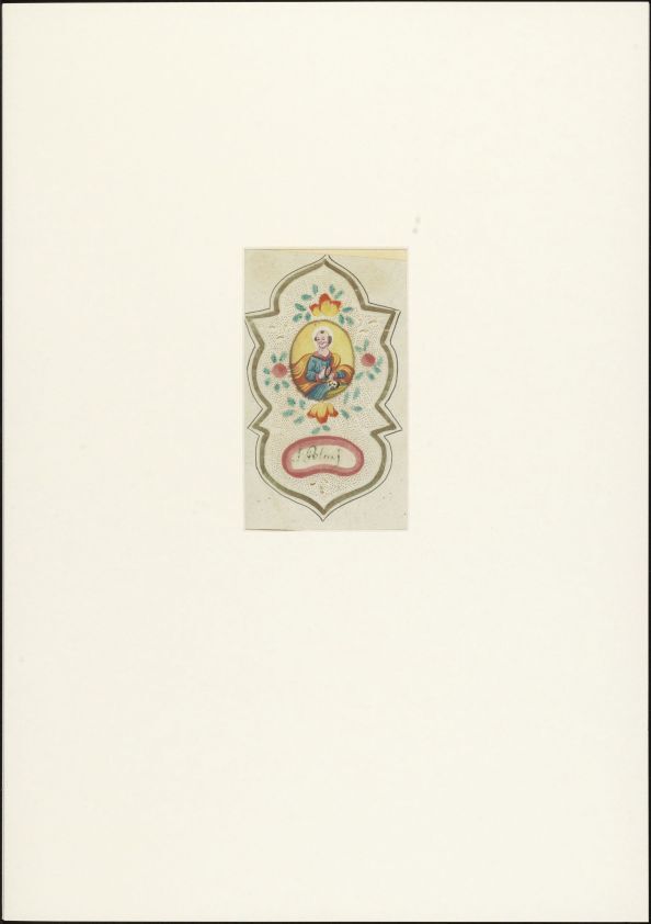 Devotieprentje met de afbeelding van een heilige. Kan een reliek van de afgebeelde heilige zijn opgenaaid. Gebruik gebedsprentje indien er een gebedstekst is toegevoegd. (Religieus Erfgoedthesaurus) https://data.cultureelerfgoed.nl/term/id/cht/0a117884-0cc2-4ee0-a223-8f6ce1fa8e67