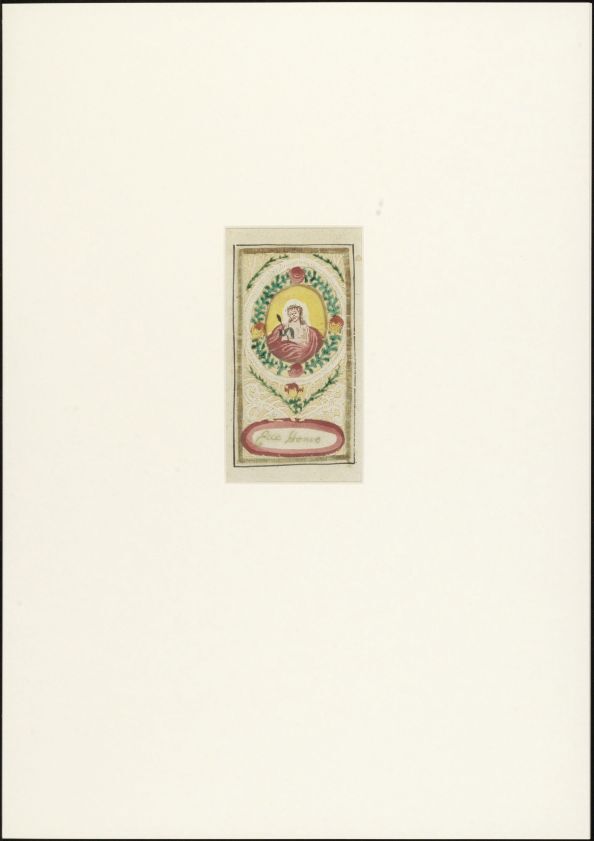 Devotieprentje met de afbeelding van een heilige. Kan een reliek van de afgebeelde heilige zijn opgenaaid. Gebruik gebedsprentje indien er een gebedstekst is toegevoegd. (Religieus Erfgoedthesaurus) https://data.cultureelerfgoed.nl/term/id/cht/0a117884-0cc2-4ee0-a223-8f6ce1fa8e67