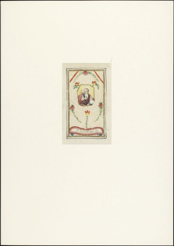 Devotieprentje met de afbeelding van een heilige. Kan een reliek van de afgebeelde heilige zijn opgenaaid. Gebruik gebedsprentje indien er een gebedstekst is toegevoegd. (Religieus Erfgoedthesaurus) https://data.cultureelerfgoed.nl/term/id/cht/0a117884-0cc2-4ee0-a223-8f6ce1fa8e67