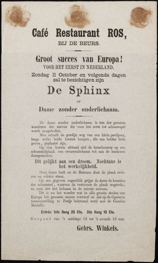 Programma voor toneelvoorstelling De Sphinx, in café restaurant Ros, Leeuwarden, 11 oktober