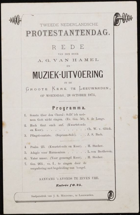 Programma van de Tweede Nederlandsche Protestantendag, in de Groote Kerk te Leeuwarden, 28 october 1874