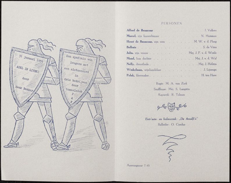 Programma van de feestavond van het P.A.F. op 31 januari 1959