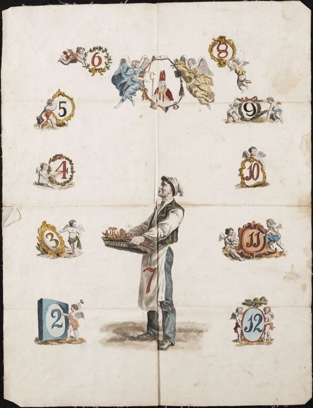 Het spel De Jood: figuren van 2 t/m 12 en Sint Nicolaas